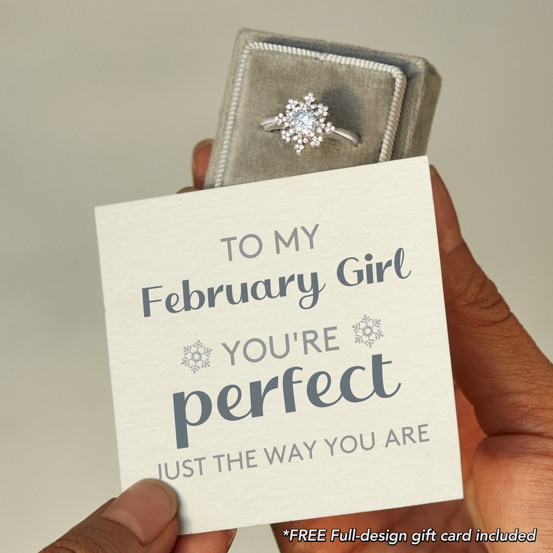 Immortalizing an authentic snowflake, this dainty ring is a perfect gift for a friend with an upcoming birthday in February.