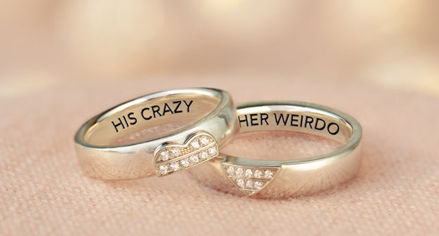 Pledge your love with this heart design band set. When you wear the band and are hand in hand, the heart is completed and your love is perfected. It's a best holiday gift for couples. Never miss it!